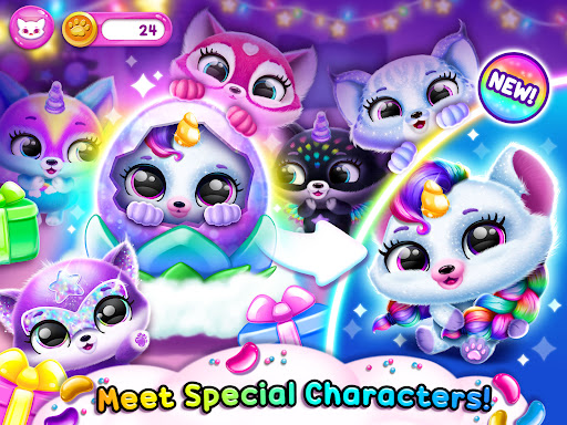 Fluvsies Mod APK is an engaging game that takes players to a delightful world filled with lovable creatures. The main character is a colorful seven-color kitten with cute fangs, who must rescue rare Fluvsies eggs from opportunistic thieves. After transforming into a lucky cat form, players embark on a country rescue adventure, caring for the animals like babies by feeding them, playing with them, and ensuring their overall well-being.